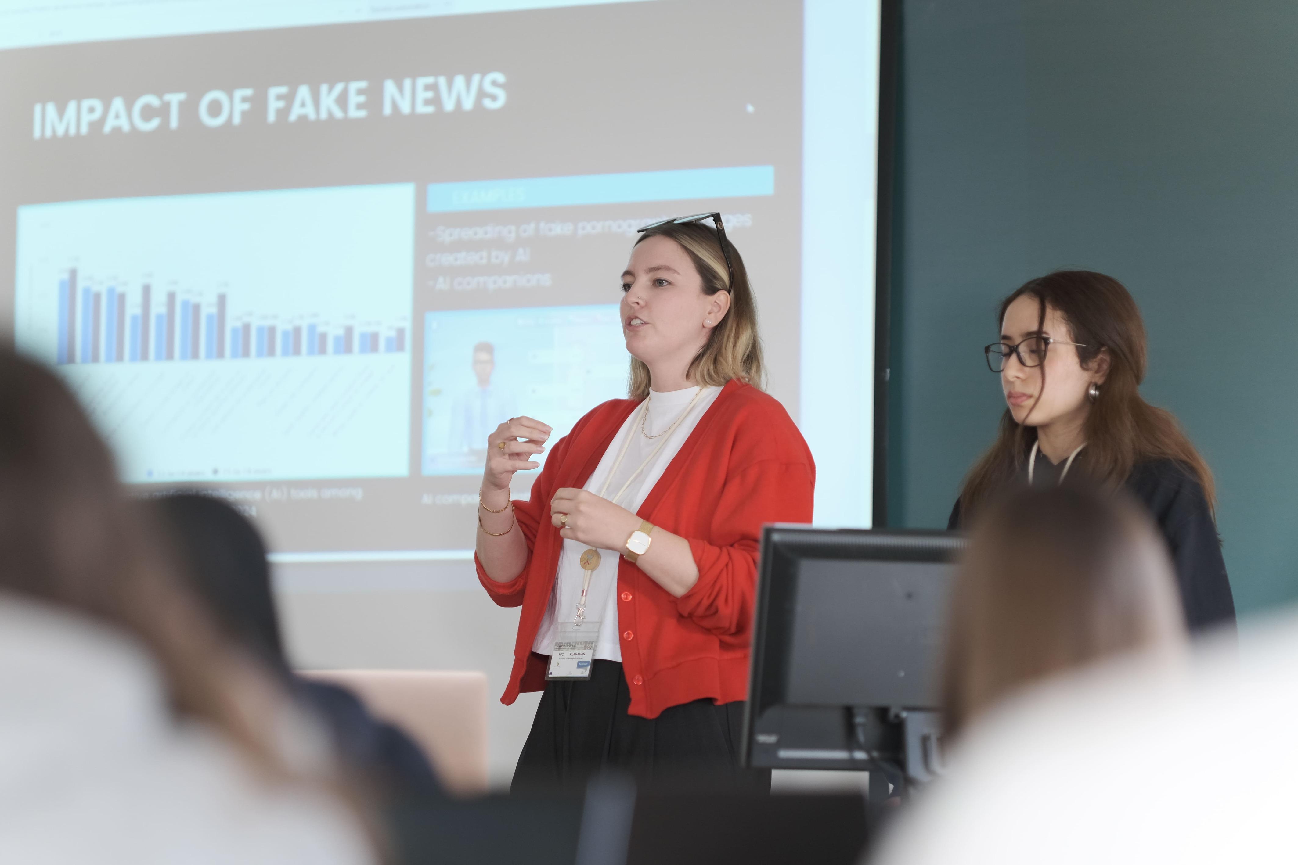 Midweek, the focus shifted to a full-day project titled Tackling Fake News and Misinformation Through Effective Science Communication. This intensive session challenged students to create evidence-based tools to counter misinformation on topics like climate change, vaccination, or artificial intelligence.